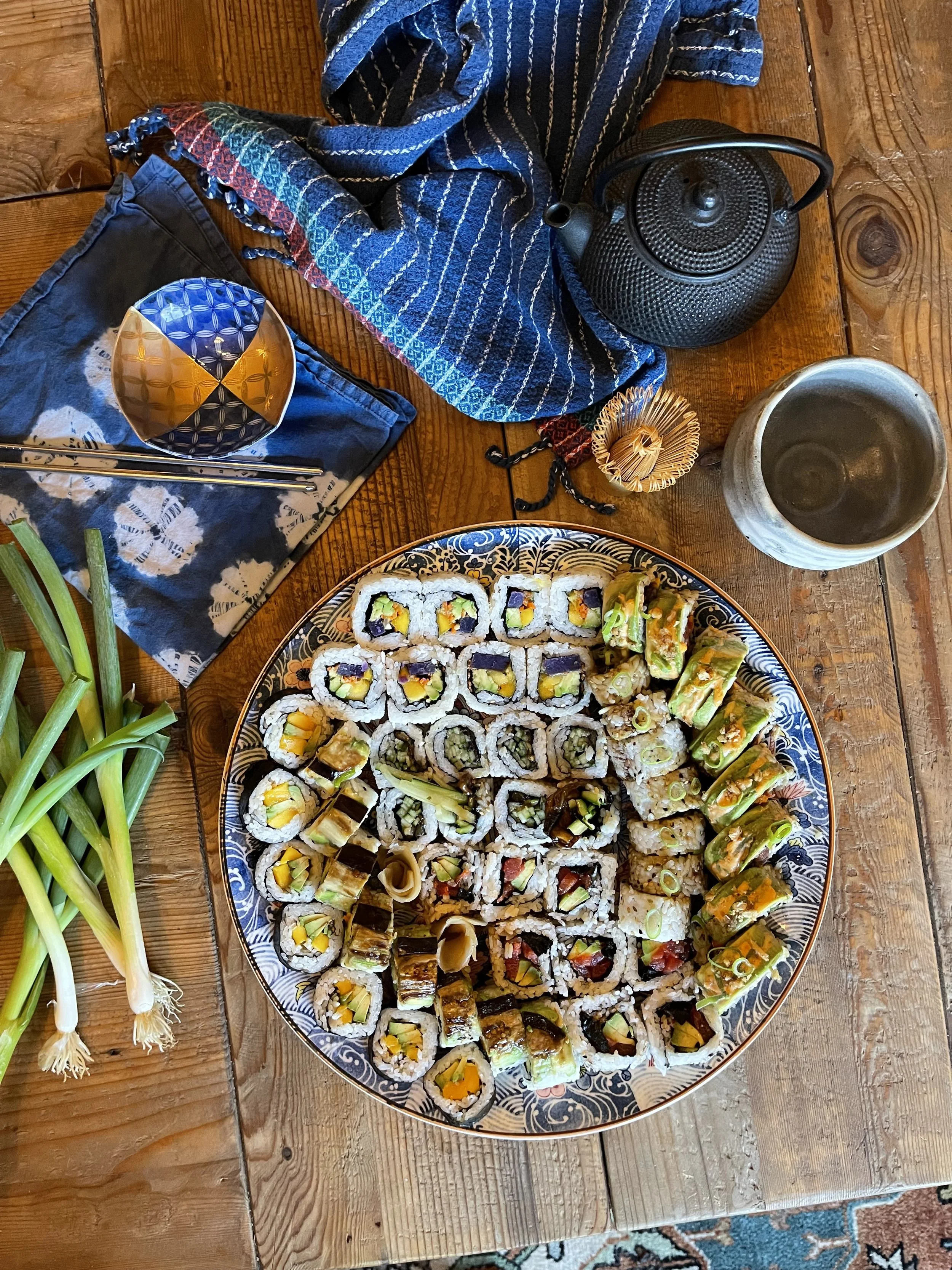Cucumber & Avocado, Tamari Maple Braised Eggplant, Unagi Sauce & Scallion